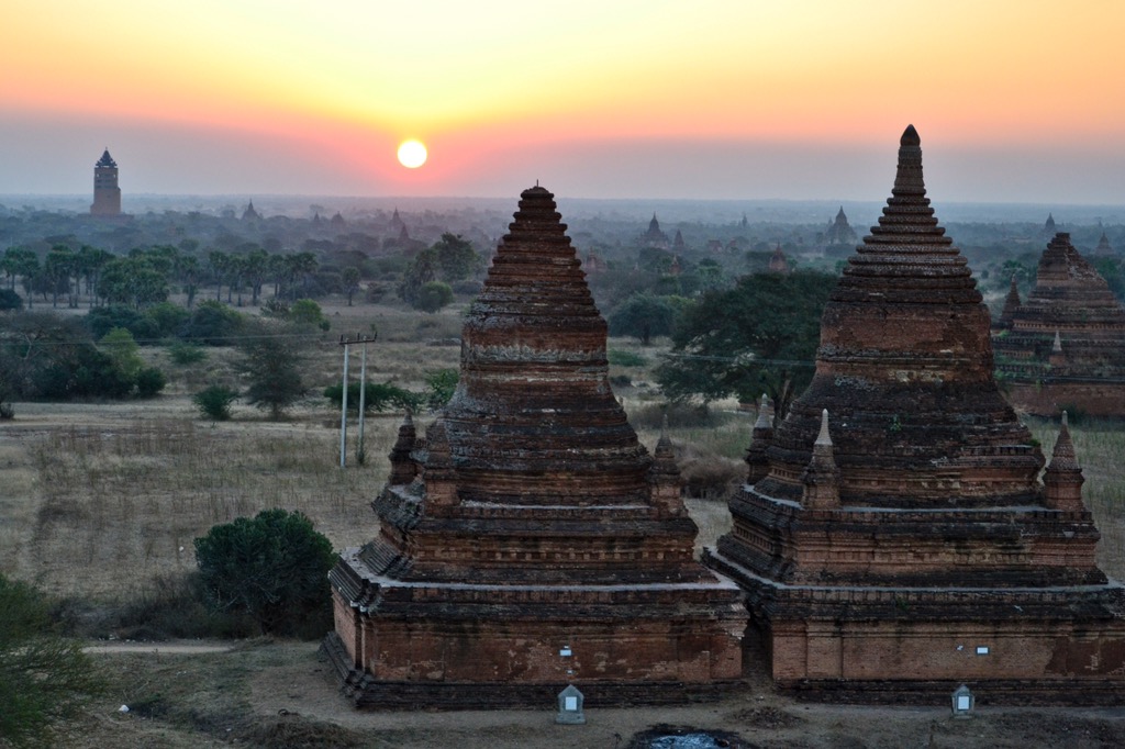 Sonnenuntergang und Sonnenaufgang in Bagan