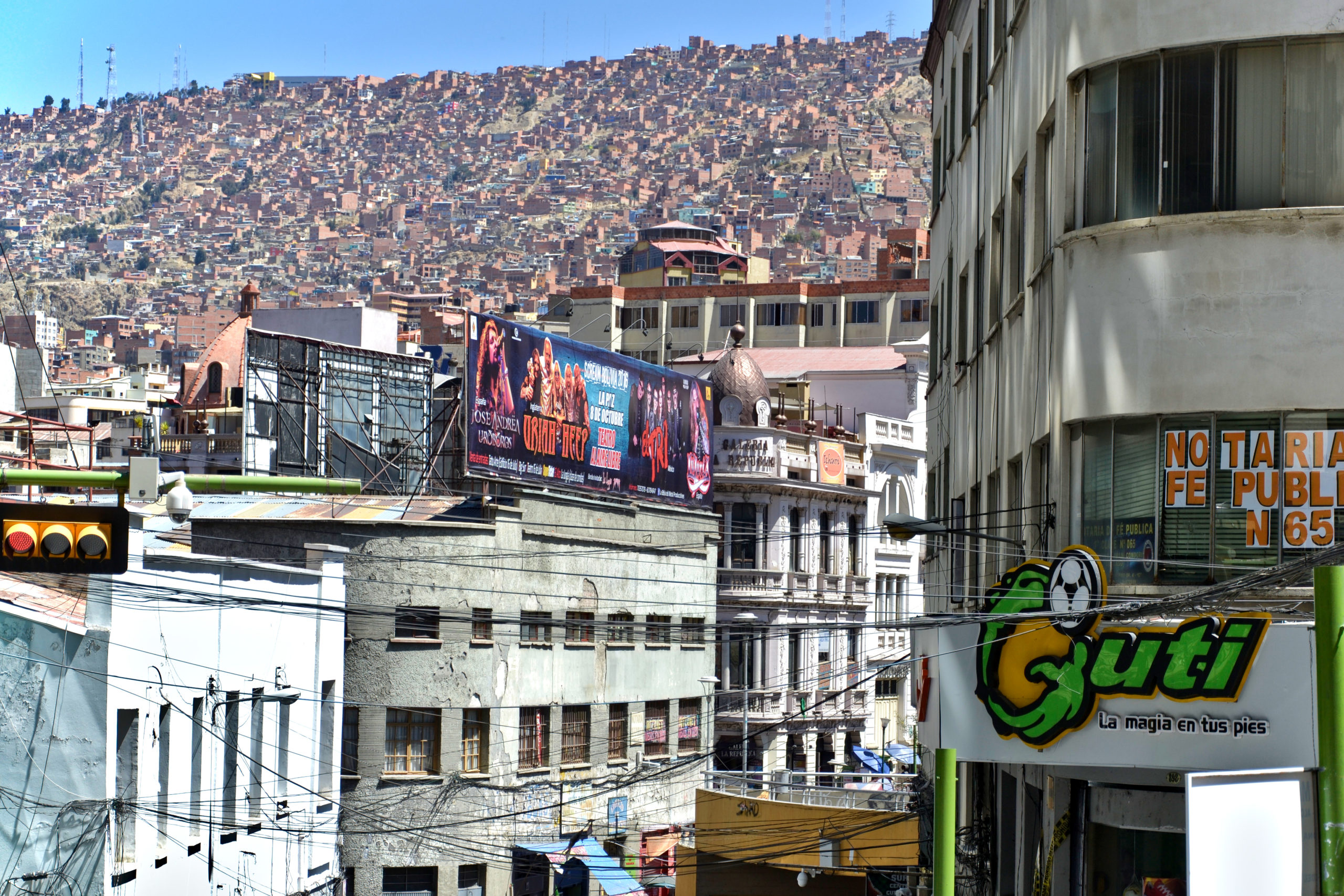 La Paz ist ein städtischer Dschungel, in dem viele Menschen (die meisten von ihnen mit indigenem Erbe) auf den Straßen unterwegs sind, aber mit entspanntem Verkehr (mit Ausnahme der Minibusse). Noch nie haben wir so viele geknotete Stromkabel auf der Straße gesehen. Es ist fast unmöglich, Fotos ohne diese Kabel zu machen.