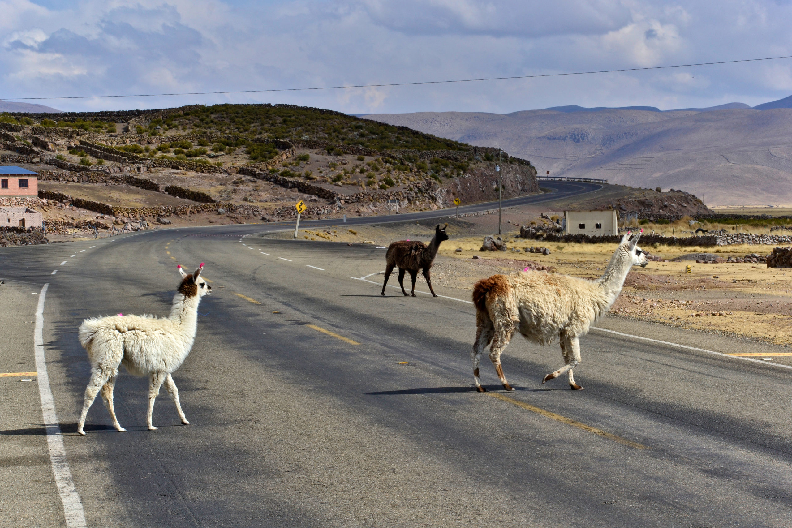 Bolivien überrascht uns mit gut asphaltierten Straßen und außerhalb der Städte mit wenigen anderen Autos. Auch sind die Straßen ziemlich eben – nicht bergauf und bergab wie in Peru. Wir haben ein Allrad-Fahrzeug gemietet, aber es scheint, dass wir hier mit einem „normalen“ Auto ohne Einschränkungen hätten fahren können (vielleicht mit Ausnahme der Salzwüste in Uyuni). Entlang der Straßen befinden sich recht kleine Ortschaften, viele Schafen und Alpakas. Und von Zeit zu Zeit passieren wir Wüsten- und Salzgebiete.