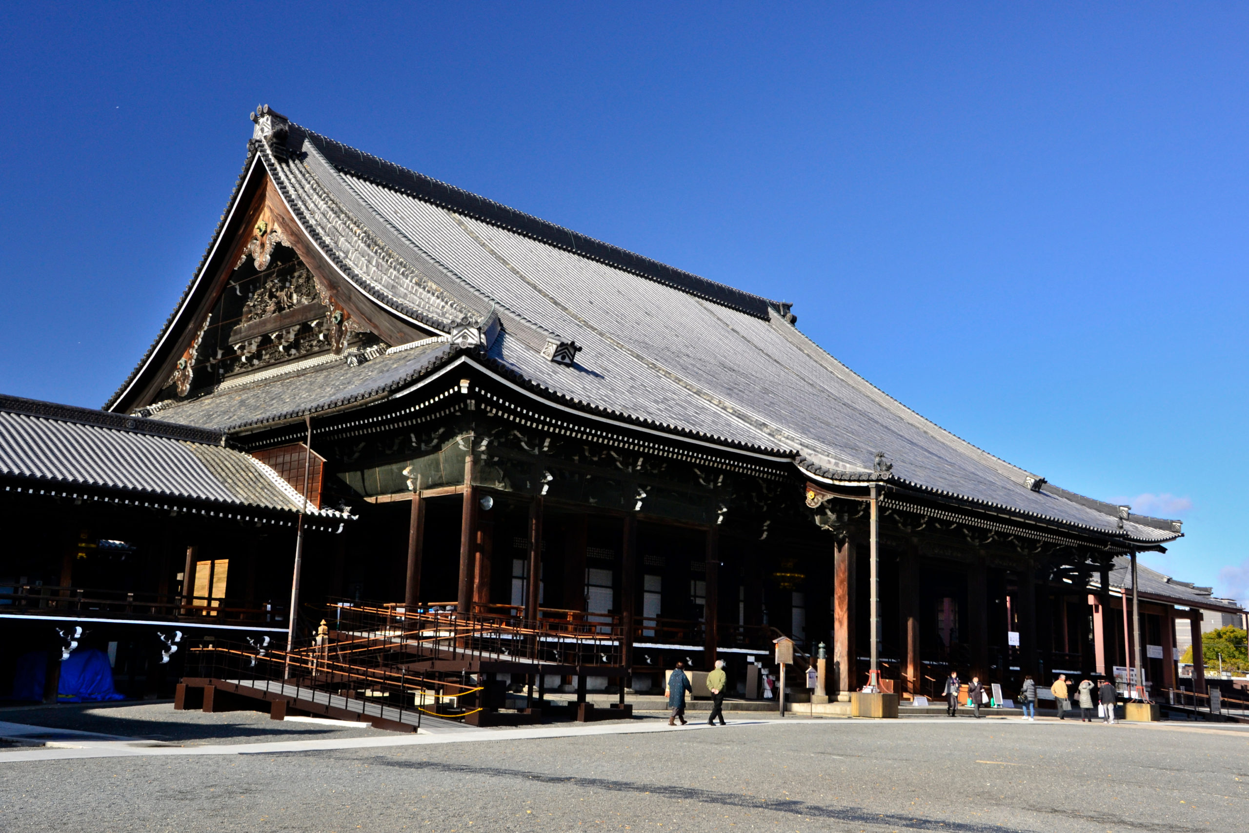 In der Nähe des Hauptbahnhofs von Kyoto liegt dieser Jodo-Shinshu-Tempel, der zu Beginn des 13. Jahrhunderts gegründet wurde. Die Haupt- und Gründerhalle gehört zu den größten Holzgebäuden der Welt.