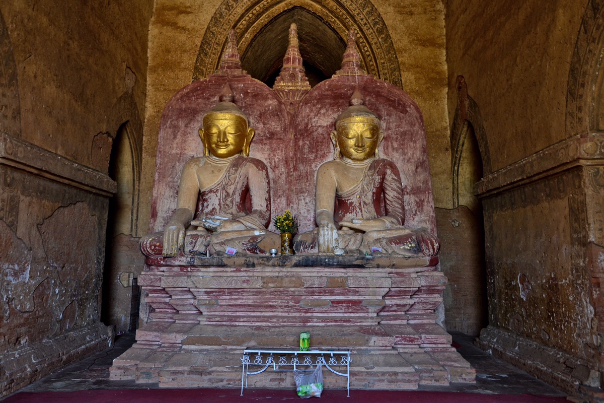 Für den zweiten und dritten Tag in Bagan haben wir E-Bikes gemietet, um die entlegeneren Tempel zu erkunden. E-Bikes sind (eher elektronischer Roller) eine gute Idee in dieser trockenen und heißen Gegend von Myanmar. Die Tempel mit nur einer Ebene im Erdgeschoss sind älter als die mit mehreren Ebenen. Das Hauptmaterial waren Ziegelsteine, die mit dem Boot nach Bagan gebracht wurden. Alle noch existierenden Gebäude dienten religiösen Zwecken. Die Paläste und die Häuser der Könige haben die lange Zeit und insbesondere die Kämpfe gegen die Mongolen nicht überlebt.