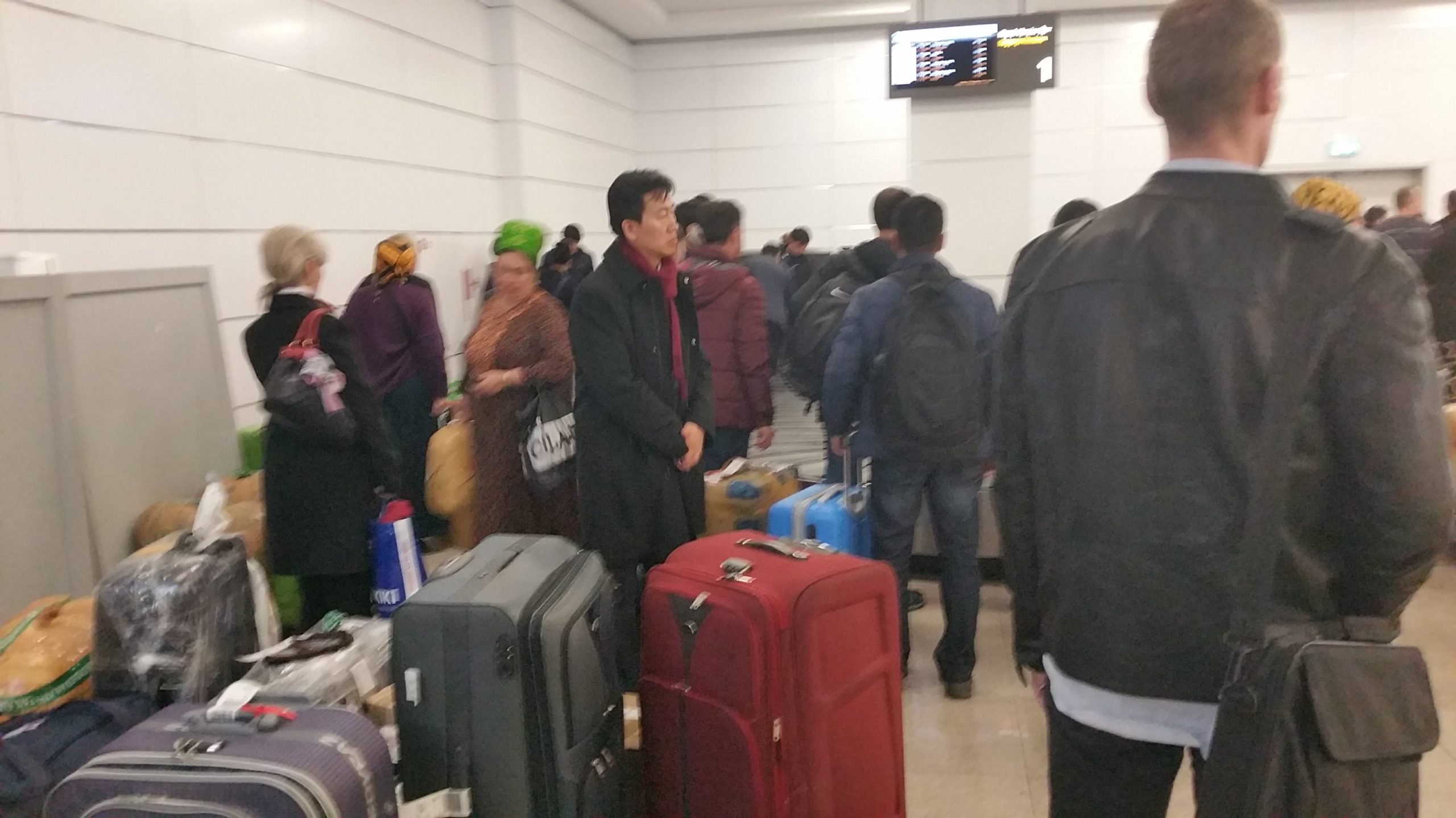 We have decided to take a flight via Istanbul instead of a direct flight from Frankfurt to Ashgabat. The main reason were the reports about the domestic airline. In Istanbul our flight was departing directly besides the gate where the flights to Kabul departed. Seeing people sitting at the gate in handcuffs was a strange feeling. Chaotic situation also at the Ashgabat airport where it was already hard to get to the luggage strap since it was very crowded with people and suitcases as well as parcels.