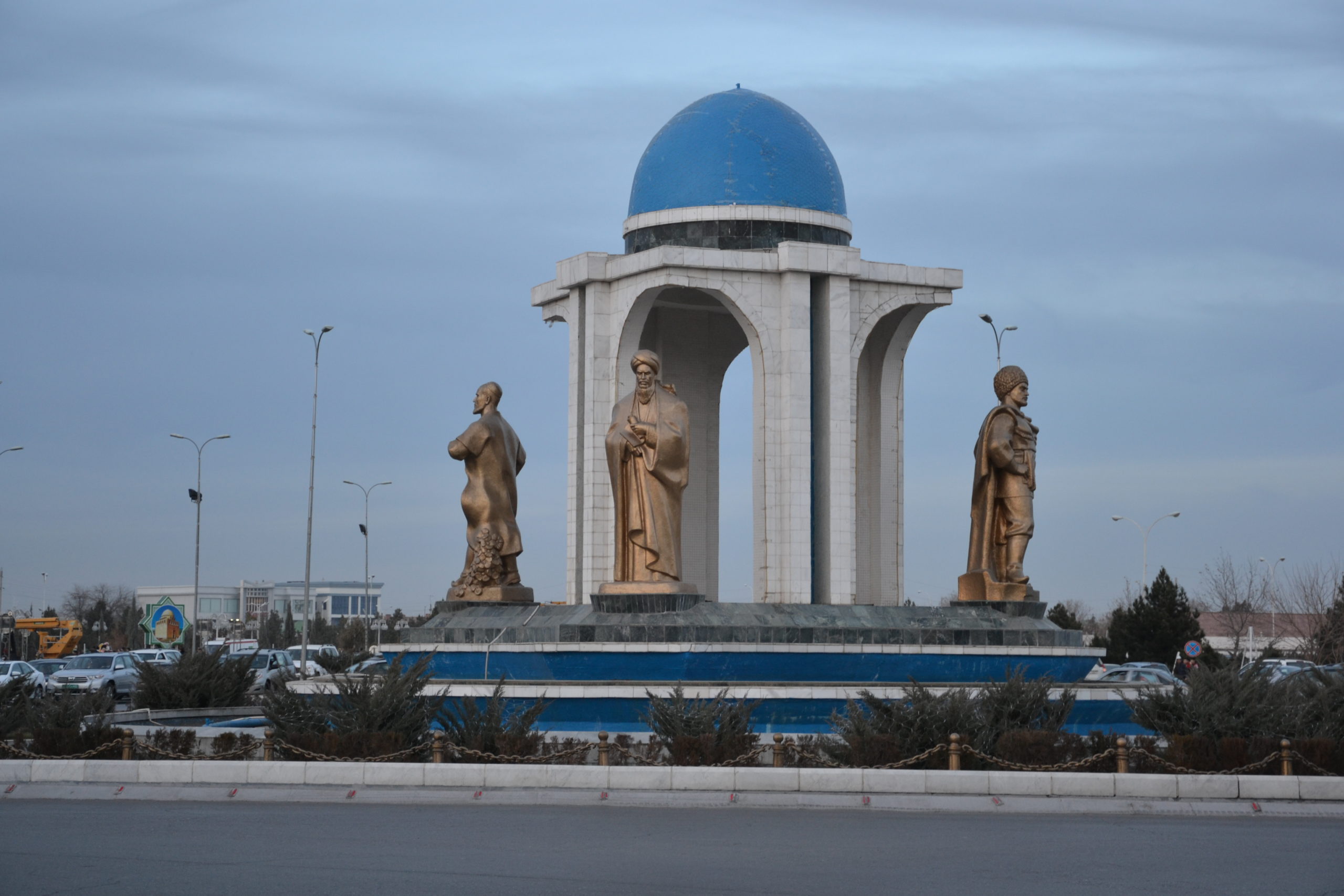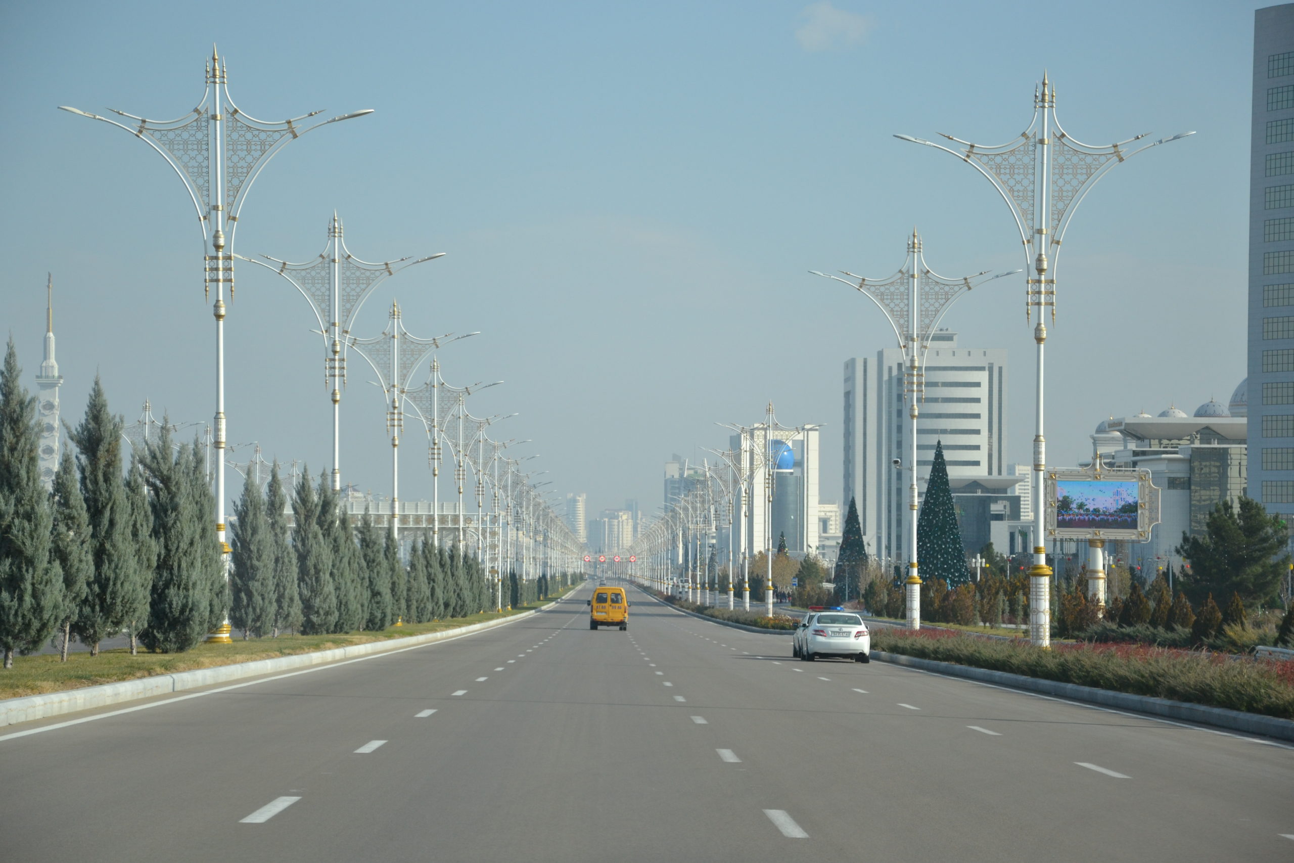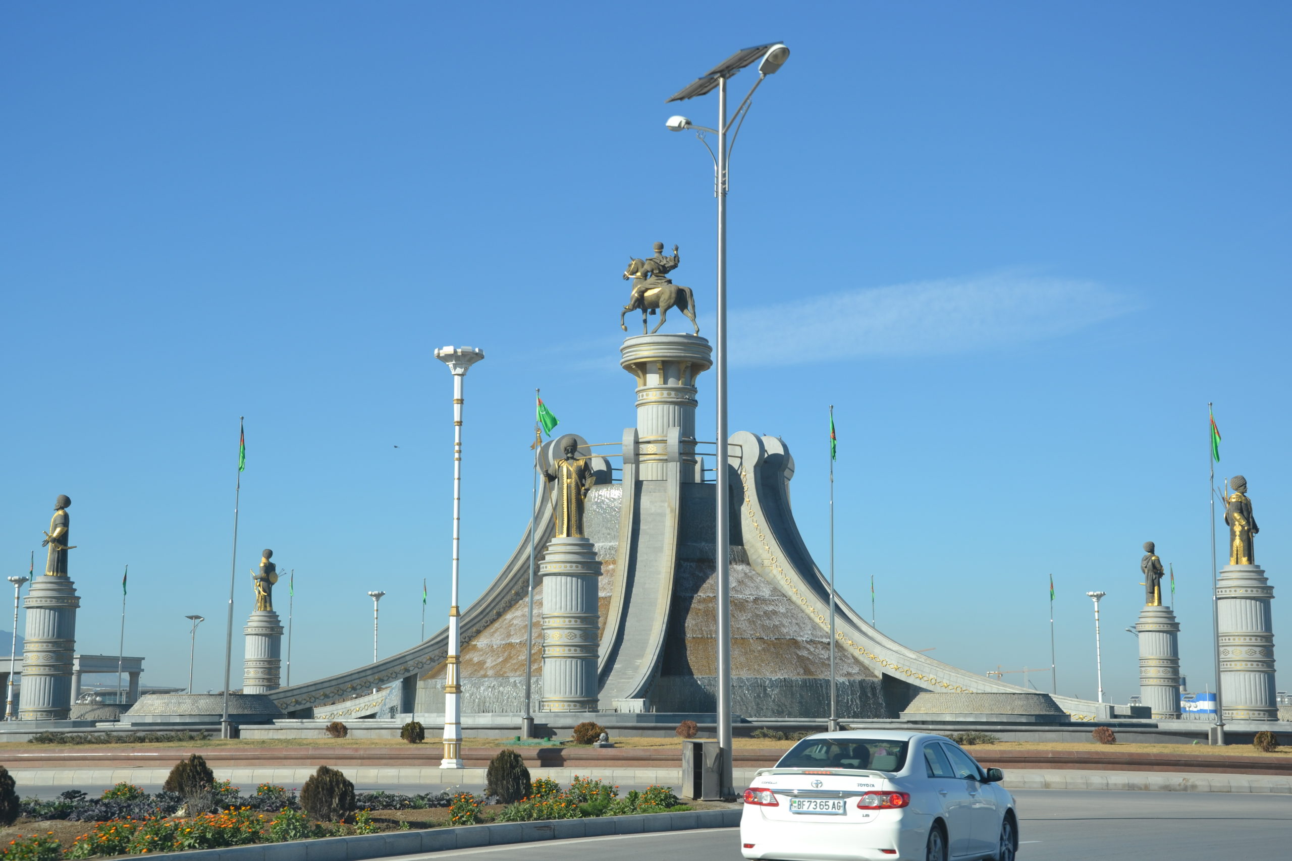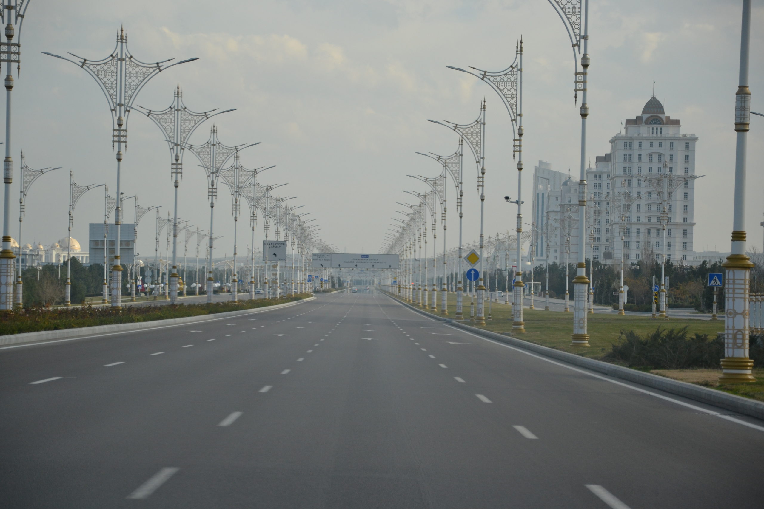 Ashgabat as the white city has a curious architecture. Since we were driving through Ashgabat on 1st of January, the streets were quite empty. Throughout the city statues and pictures from the president are present everywhere.