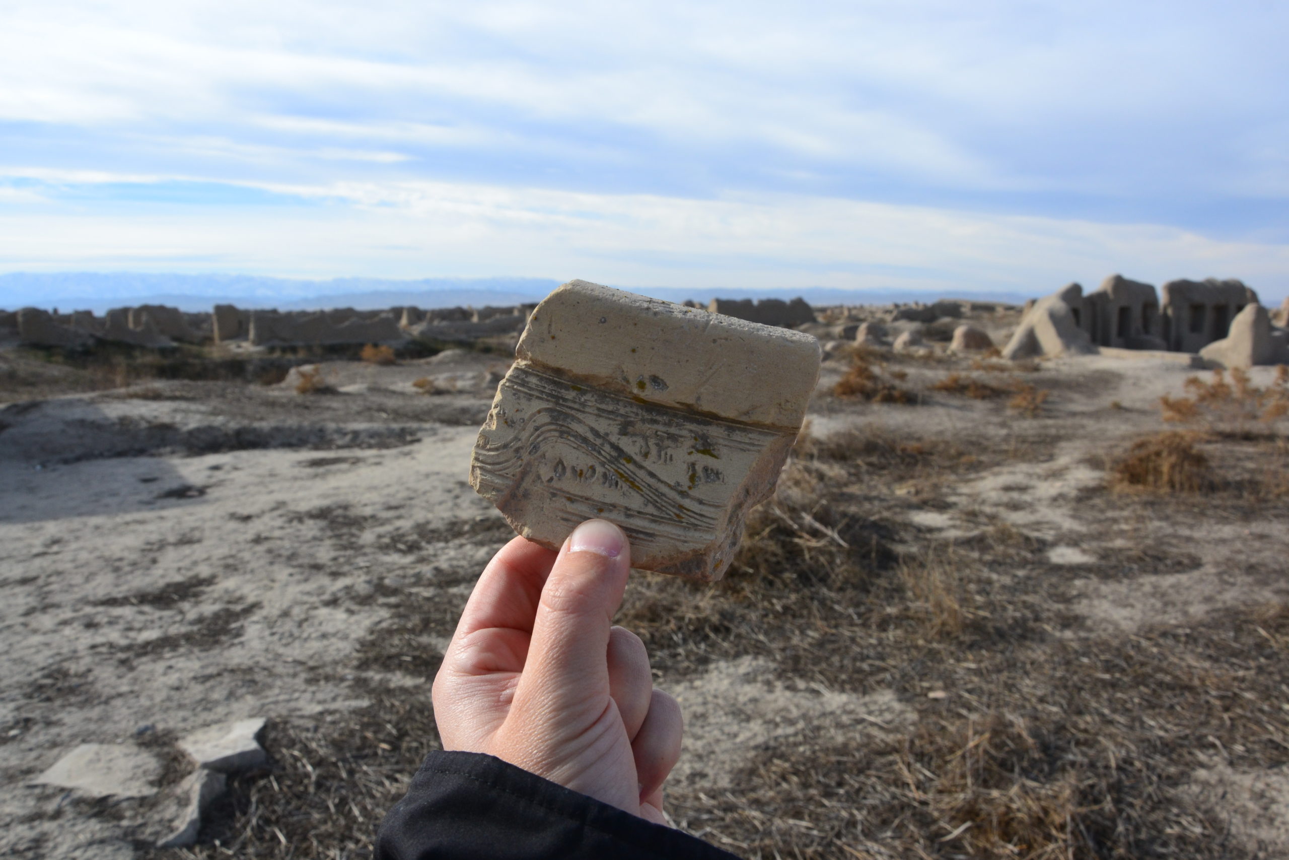Before arriving in Mary we stopped at Abiverd medieval fortress. Abiverd was once an important trading town and a key link on the Silk Road between Nisa and Merv. Abiverd in its heyday had a sophisticated system of water supply, produced highly regarded pottery and minted its own coins. The present-day site offers only a hint of these past glories but the many splits on the ground give an impression of the richness of the town.