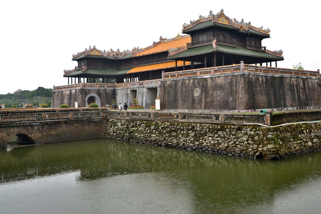 Hue was Vietnam’s capital from 1802 until 1945 and is located at the sea and near a mountainous area. This means it is a quite rainy city what we experienced during our two days we spent in Hue. The citadel in the old town (offical name: Complex of Hue monuments) was the emporer’s palace and it includes the forbidden purple city. The forbidden city was originally constructed based on the model of its big brother in Beijing. Hue was unfortunately seriously damaged by the North and South armies during the Vietnam war due to its location at the demarcation line. But some buildings have been completely reconstructed.