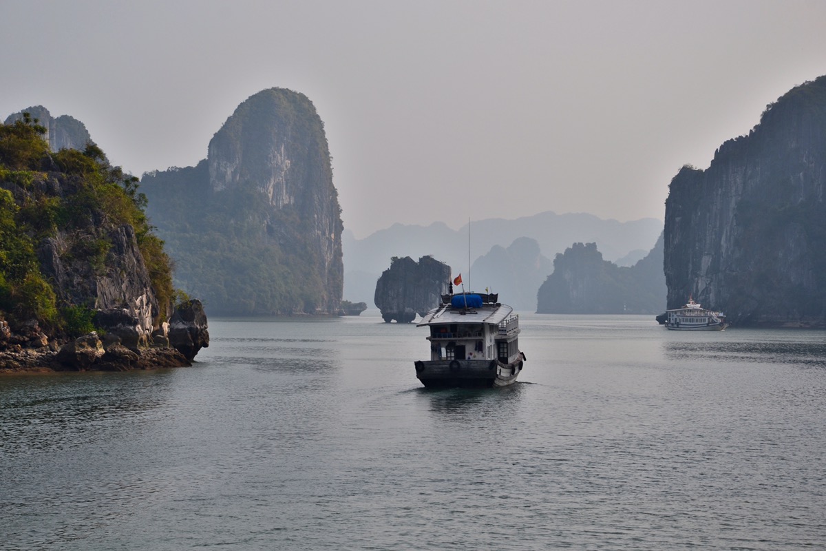 Arriving in Halong City at one of the uncountable ferry terminals, we tried to catch a boat to cruise the Halong Bay. After determining the price of only around 25 USD per person we inspected the promised boat. We could not believe that the big boat usually used for large groups of tourists will be our private boat taking us around the Halong Bay for this price. But indeed, we were the only four person on this boat for the three hour cruise. Unbelievable!!