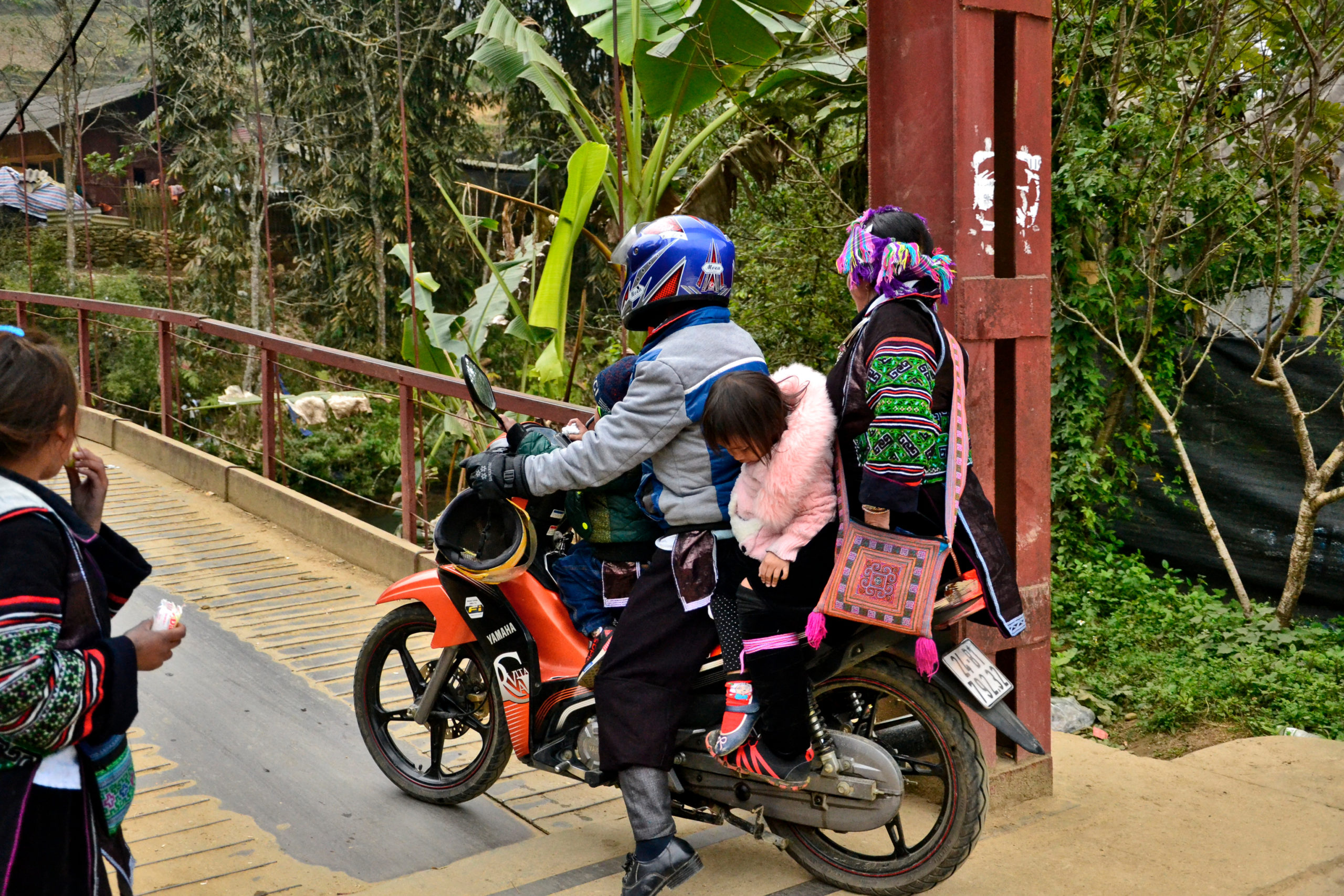 Sa Pa is a very scenic region with its rice terraces. We were trekking in Sa Pa for two half days and approx. 20 km in total to the minority villages Cat Cat, Lao Cai and Ta Van. All these villages had dozens of small shops with homemade clothes, bags and jewelry. Parts of the tour went through narrow slippery paths, steep downhill muddy trails, through thick fog with small drops of rain, across rivers and next to pigs and huge water buffaloes.